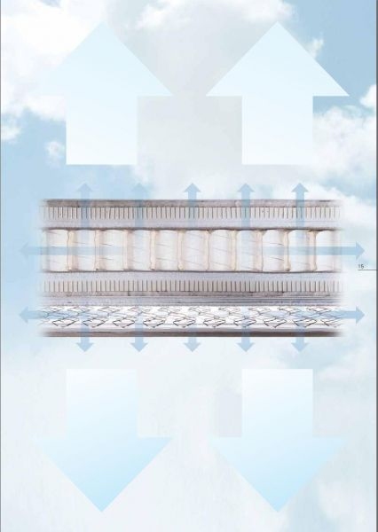 Aquesta base absorbeix al llarg de tota la seva superfície, i no només en determinats punts, l'energia dels moviments i grans pressions perquè reacciona al llarg del eix horitzontal i complementa així la reacció puntual del matalàs de Schramm. Gràcies al seu efecte de superfície, proporciona al matalàs de Schramm una amortiguació estable però que sedeix amb suavitat.