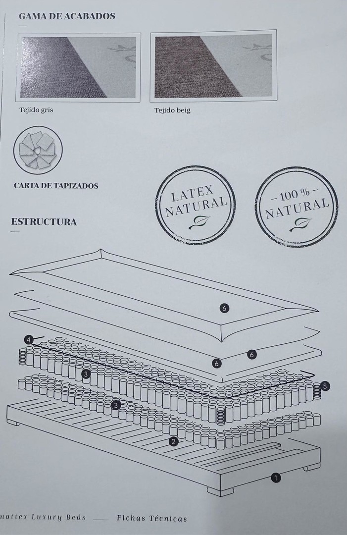 Per últim conté 2 cm de Làtex Natural situat a la part superior que ens aporta amortiguació a la superfície i la màxima transpiració. Sobre el làtex hi ha una capa de fibres naturals per llavors cobrir tot el canapé amb un teixit neutre 100% de cotó previ a l'entapissat final que esculli el client.