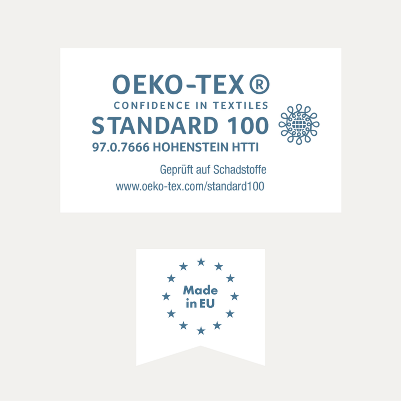 Els nostres productes son provats per a substàncies nocives i certificats per OEKO-TEX ® Service GmbH. Certificat amb el segell d'aprovació "STANDARD 100 by OEKO-TEX ®". Estan fabricades a la UE.
