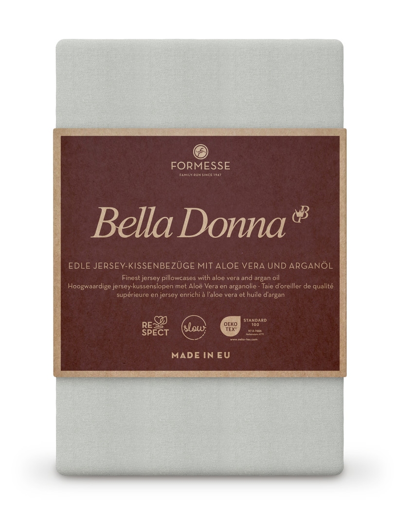 Bella Donna Jersey està teixida amb una gran quantitat de fil de cotó per fer una tela molt densa però fina. Aquestes fundes de coixí són opaques, robustes i excepcionalment duradores. Gràcies a el teixit fi i l'addició d'Aloe Vera i proteïnes de seda, les fundes son especialment suaus amb una sensació de luxe. Això permet que s'ajusti perfectament al coixí.