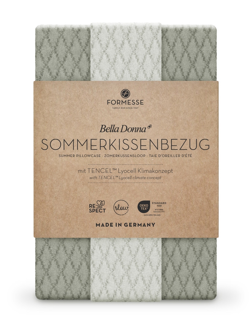 La coixinera Bella Donna Summer de Formesse està formada per 35% Tencel ™ Lyocell, 41% fil de Cotó i 24% de Poliéster. Gràcies a la fibra de cel·lulosa natural TENCEL®, aquesta funda incorpora un sofisticat concepte de control climàtic que garanteix un temperatura agradable i un ambient sec per dormir. A més, les fibres naturals permeten que aquesta absorbeixi, mogui i dissipi l'humitat. L'objectiu és aconseguir menys sudoració i menys interrupcions per dormir en aquestes nits caloroses. També evita les olors desagradables i redueix els bacteris.