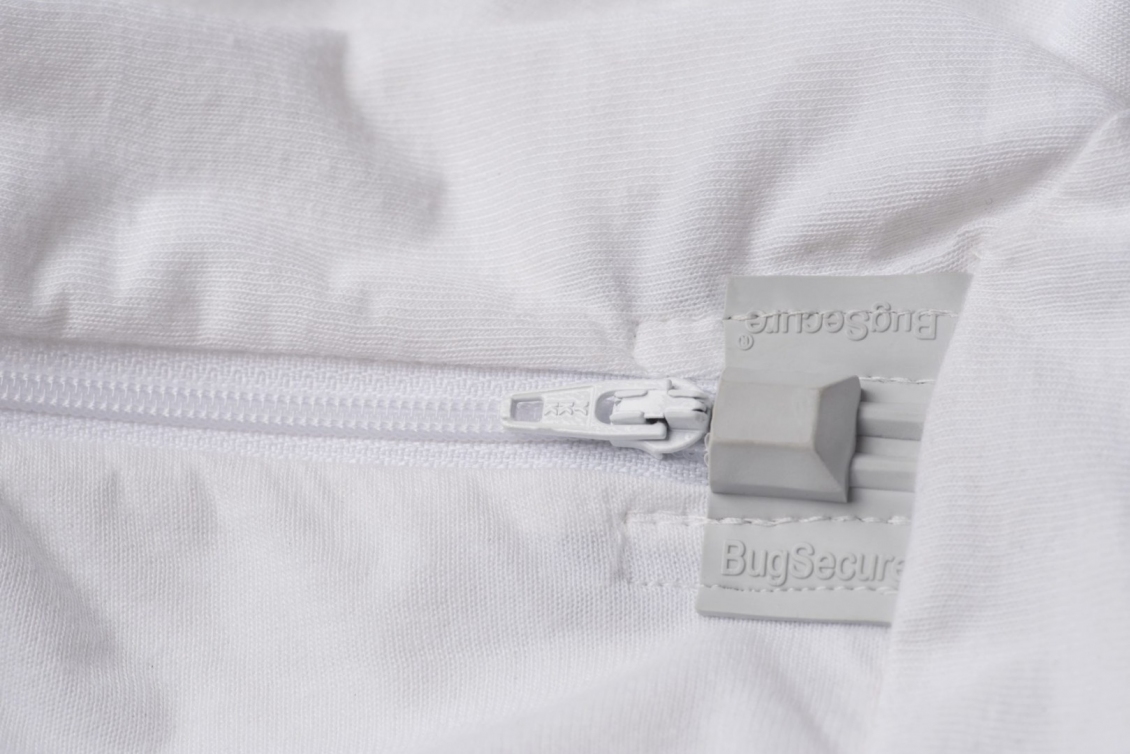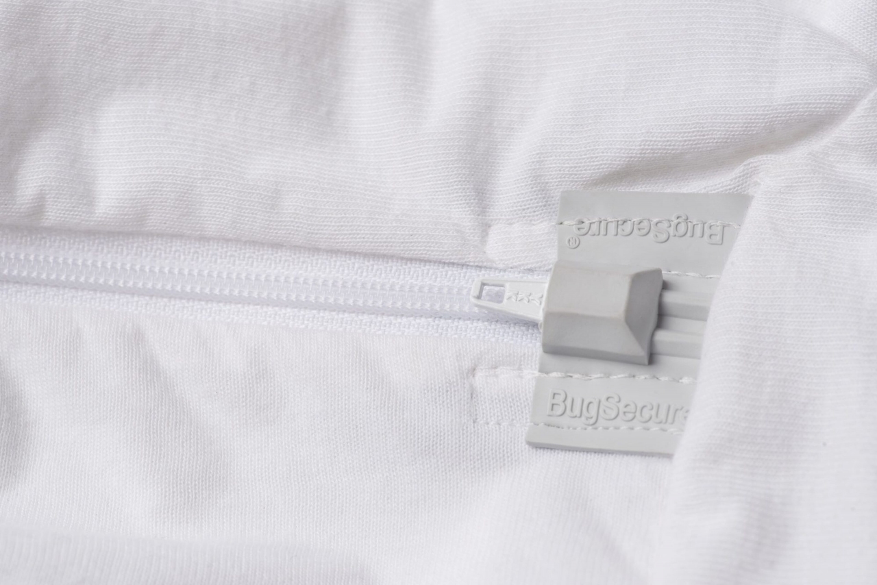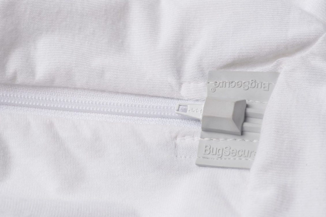 Aquesta funda de matalàs està confeccionat amb el tancament de cremallera patentat Bugsecure que impedirà l'entrada de xinxes, àcars, ... garantint el tancament total de la funda.