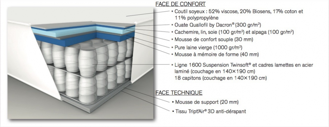 El matalàs GOLD MEDIUM es recomana sobre un somier 100% molles ensacades d'alçada 21 cm (composat per 320 molles per a una base de 140x190cm)